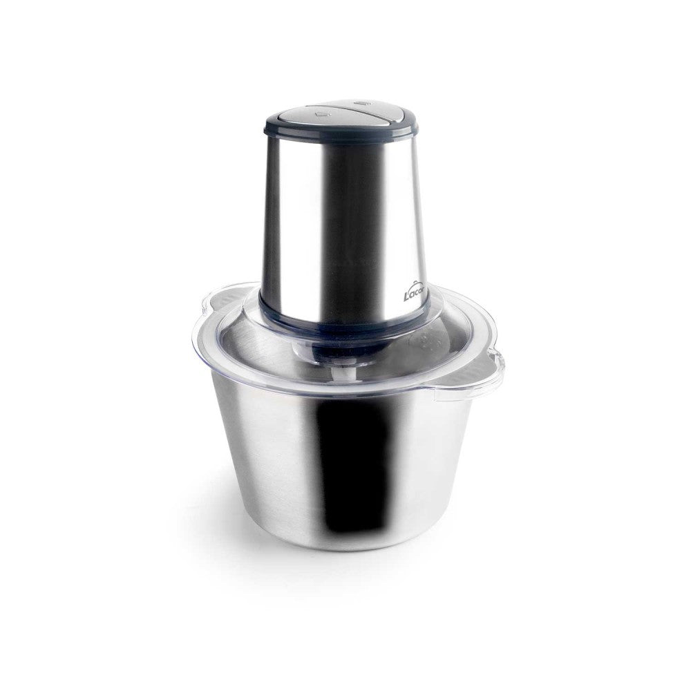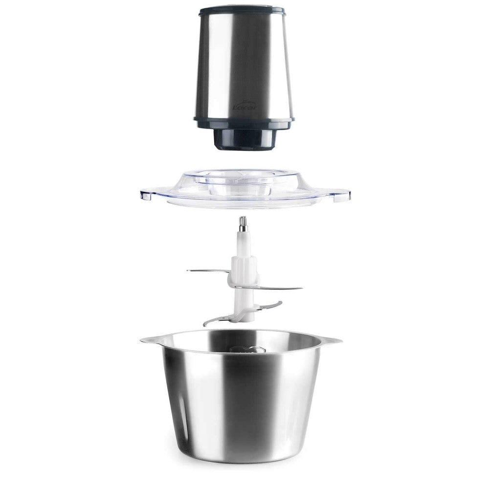 Picadora eléctrica de acero inoxidable, de Lacor. Ideal para picar todo tipo de alimentos: frutos secos, carne, verduras, jengibre, ajo, cebolla, pan y preparar los ingredientes de hamburguesas, patés, cremas, etc. De 2 litros de capacidad.